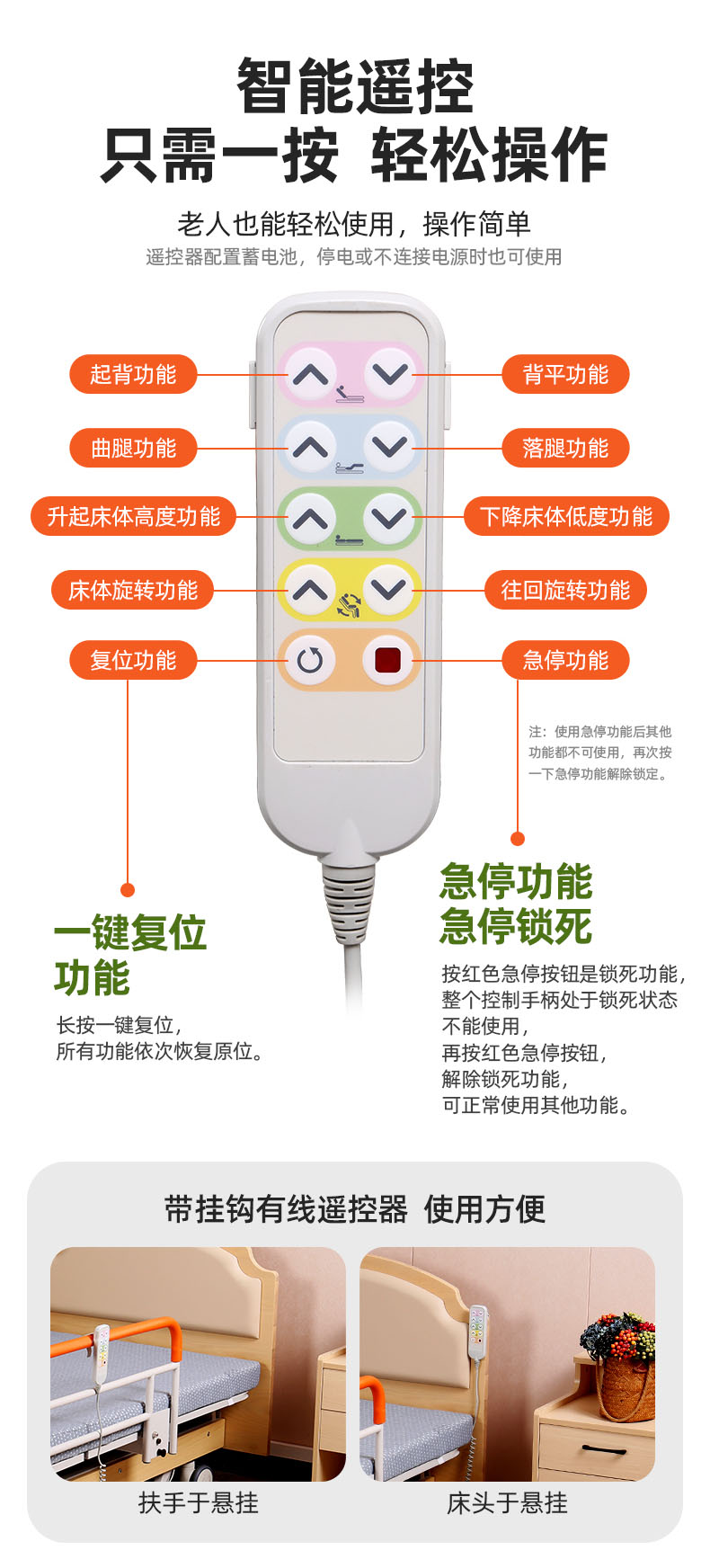 產(chǎn)品中心 > 多功能護理床系列 > HR-XZ01電動升降旋轉(zhuǎn)家居床