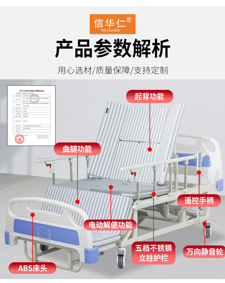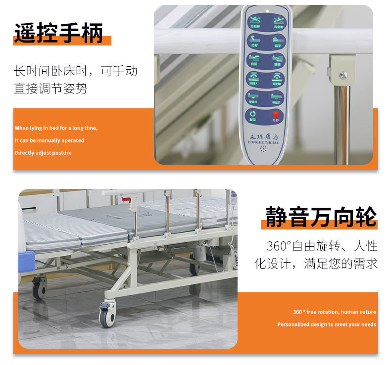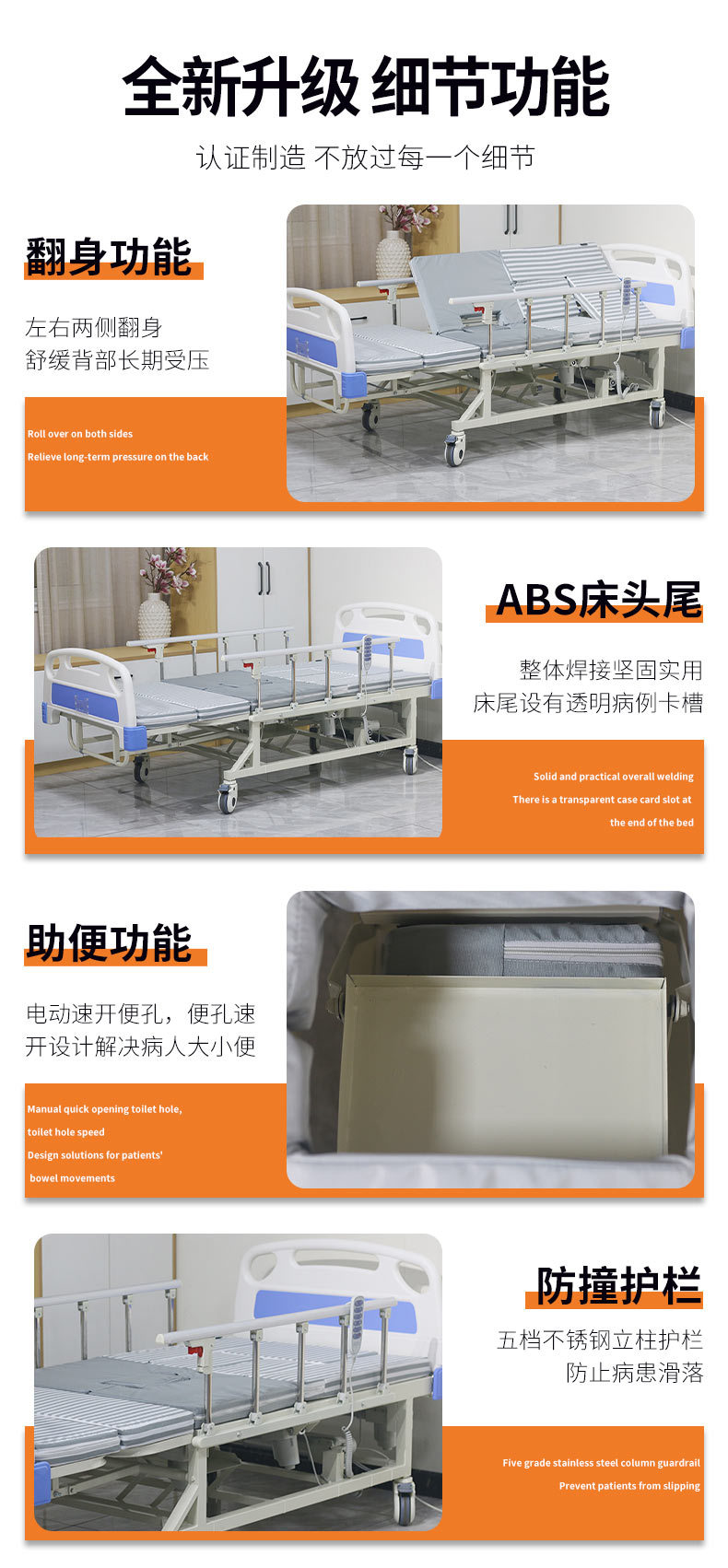 標(biāo)準(zhǔn)配置:ABS床頭1副;鋁合金折疊護(hù)欄1副;靜音輪4個;